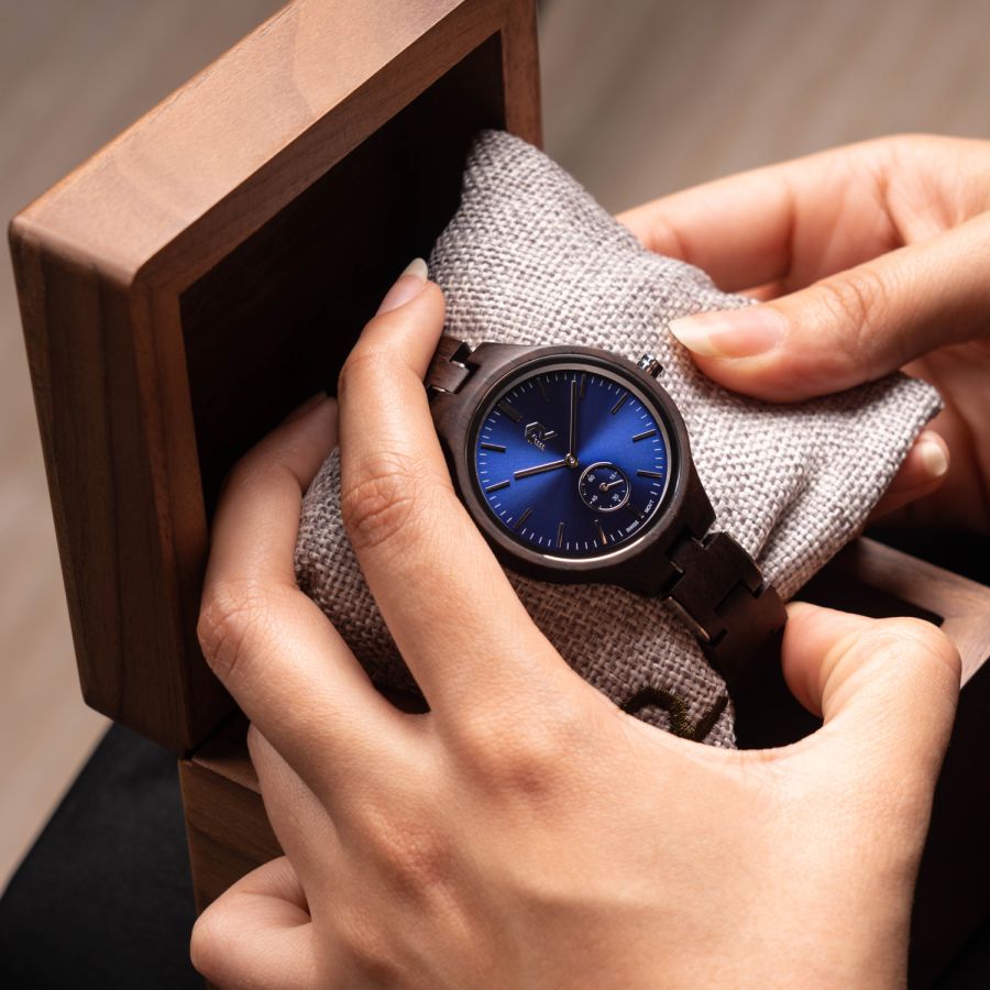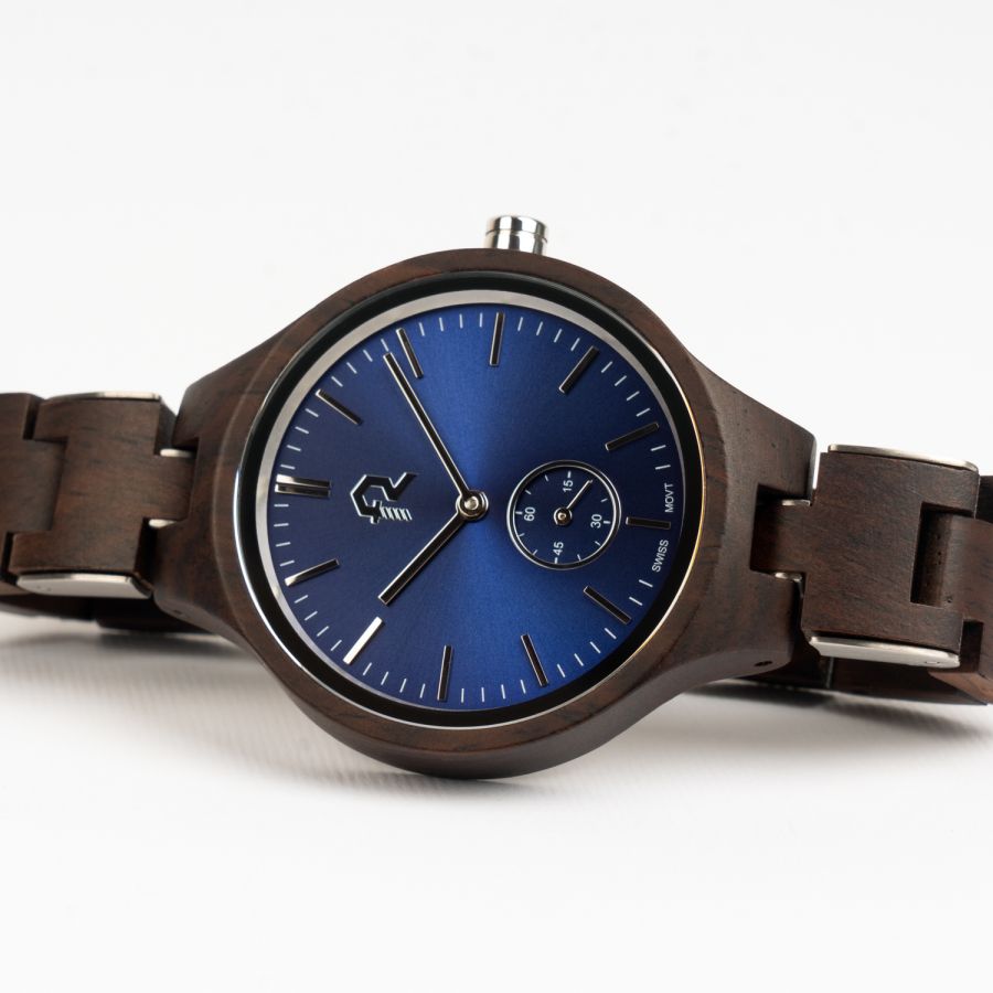 A watch that combines luxury and elegance in a piece that exudes sophistication. Its deep blue dial, like a sapphire, gives it a captivating presence that reflects a calm and confident taste. With bracelets made of the finest types of wood, it adds a warm touch that balances authenticity and modernity. A piece that complements your look in a sophisticated style that highlights your personality and adds a touch of distinction to your wrist.