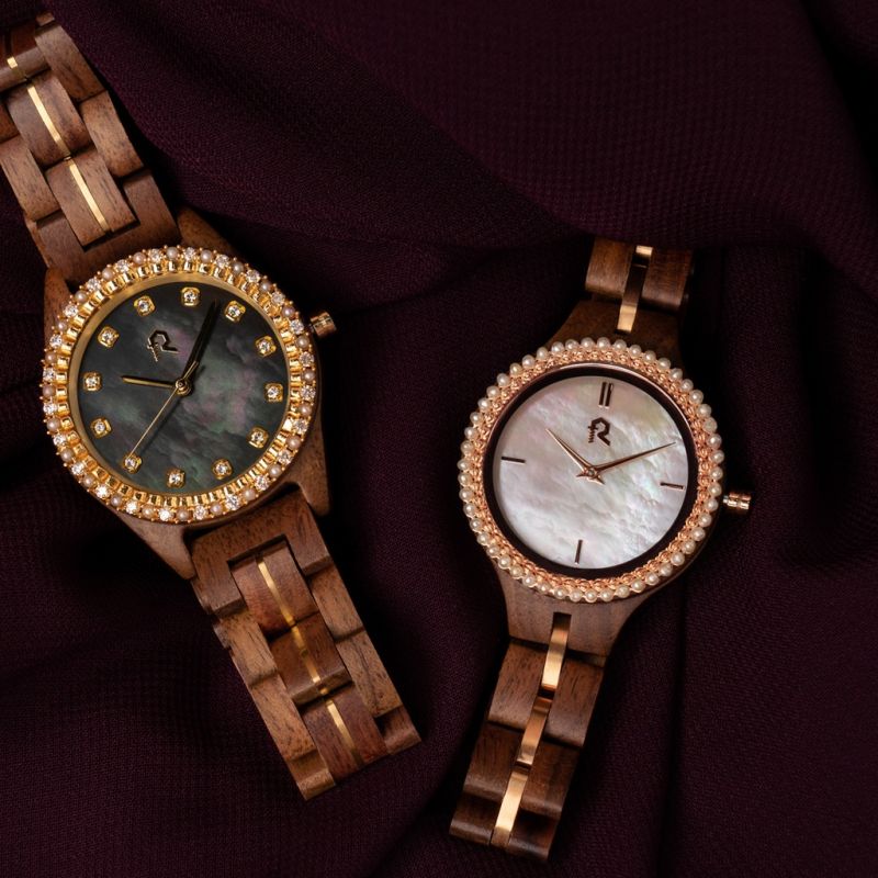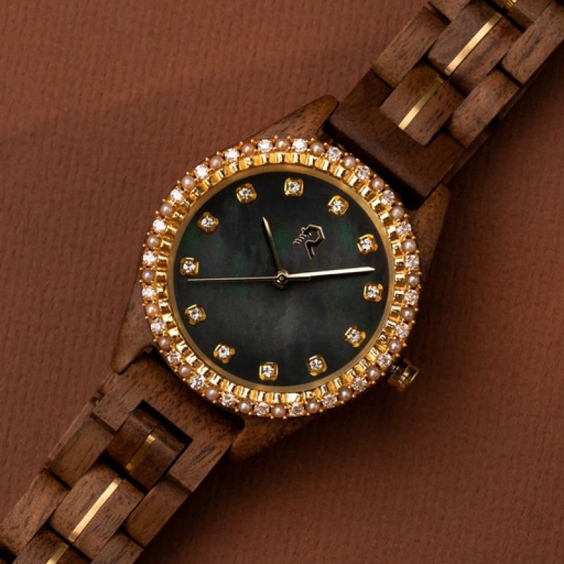 Luxury, elegance, and brilliance all these are woven around your wrist with sparkling stones and natural pearls surrounding the dark face of this luxury watch, along with hands and details in pure gold, adding a soft and radiant touch to this unique and classic design.