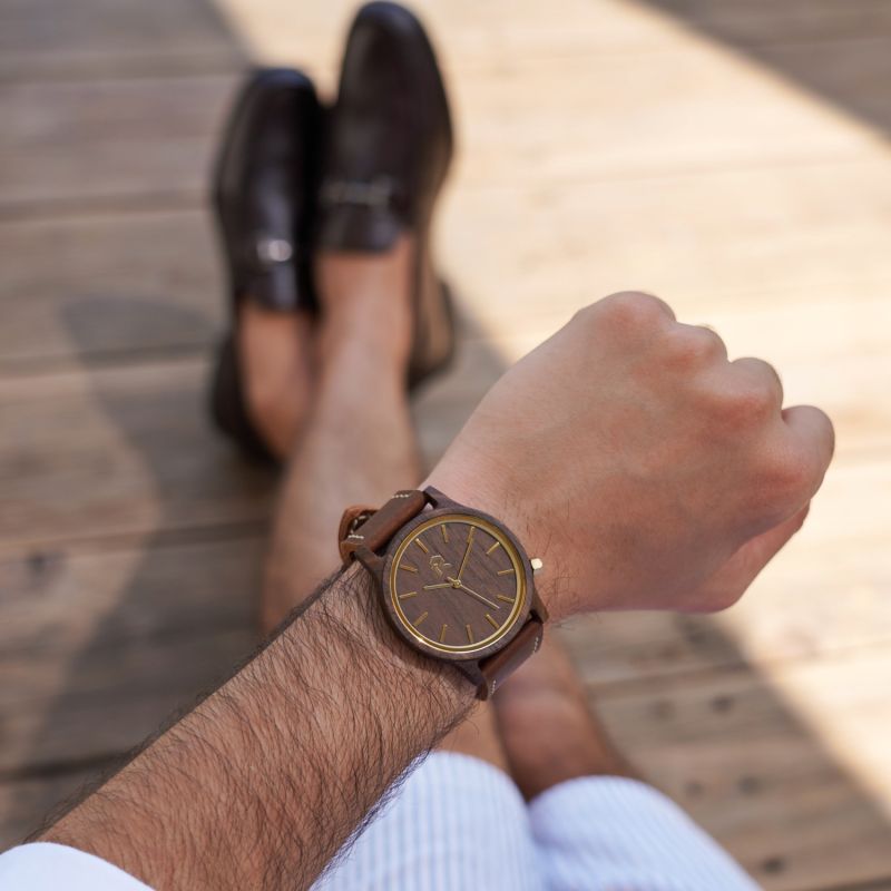 Rooted in nature, refined in design Elegant, simple, and confident — a watch designed for men who set the pace. With its unique design, a fine wood dial, and a natural brown leather strap, its clean design and bold presence make it the perfect accessory for everyday driving in style.