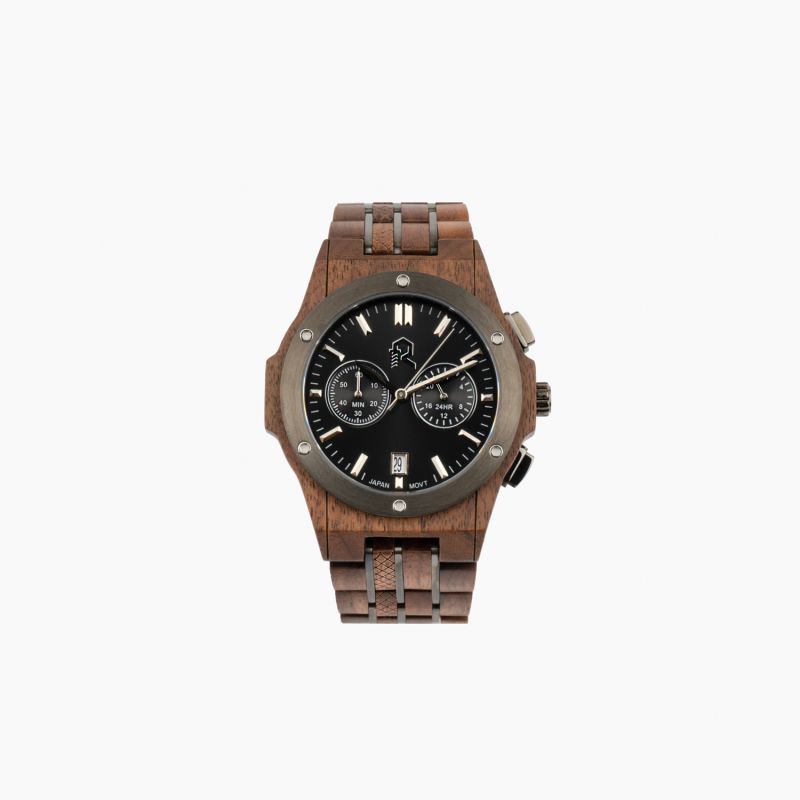 This is a sophisticated luxury chronograph watch featuring a rich green dial with dual sub-dials and a date display. The dark luxury casing and matching strap are accented with metallic links, combining natural elegance with modern design for a bold yet refined look.